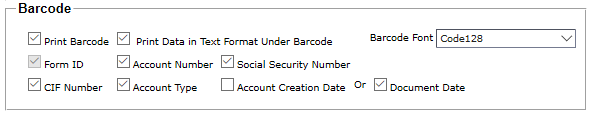 printed in the barcode. These settings are used for all documents when the Print Barcode check box is